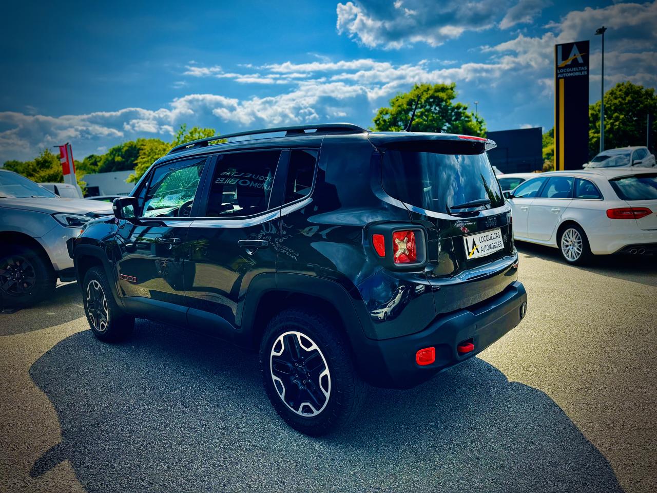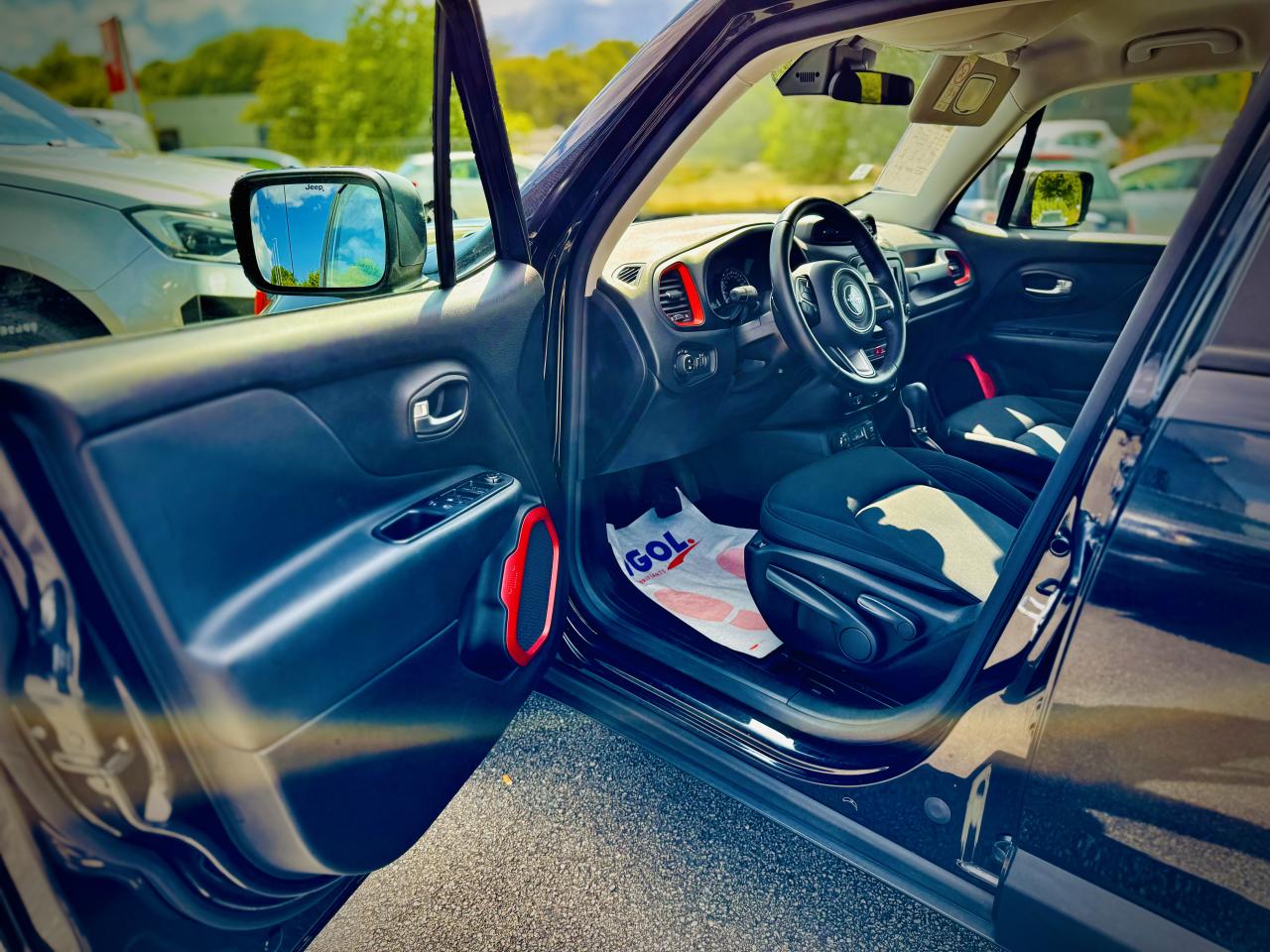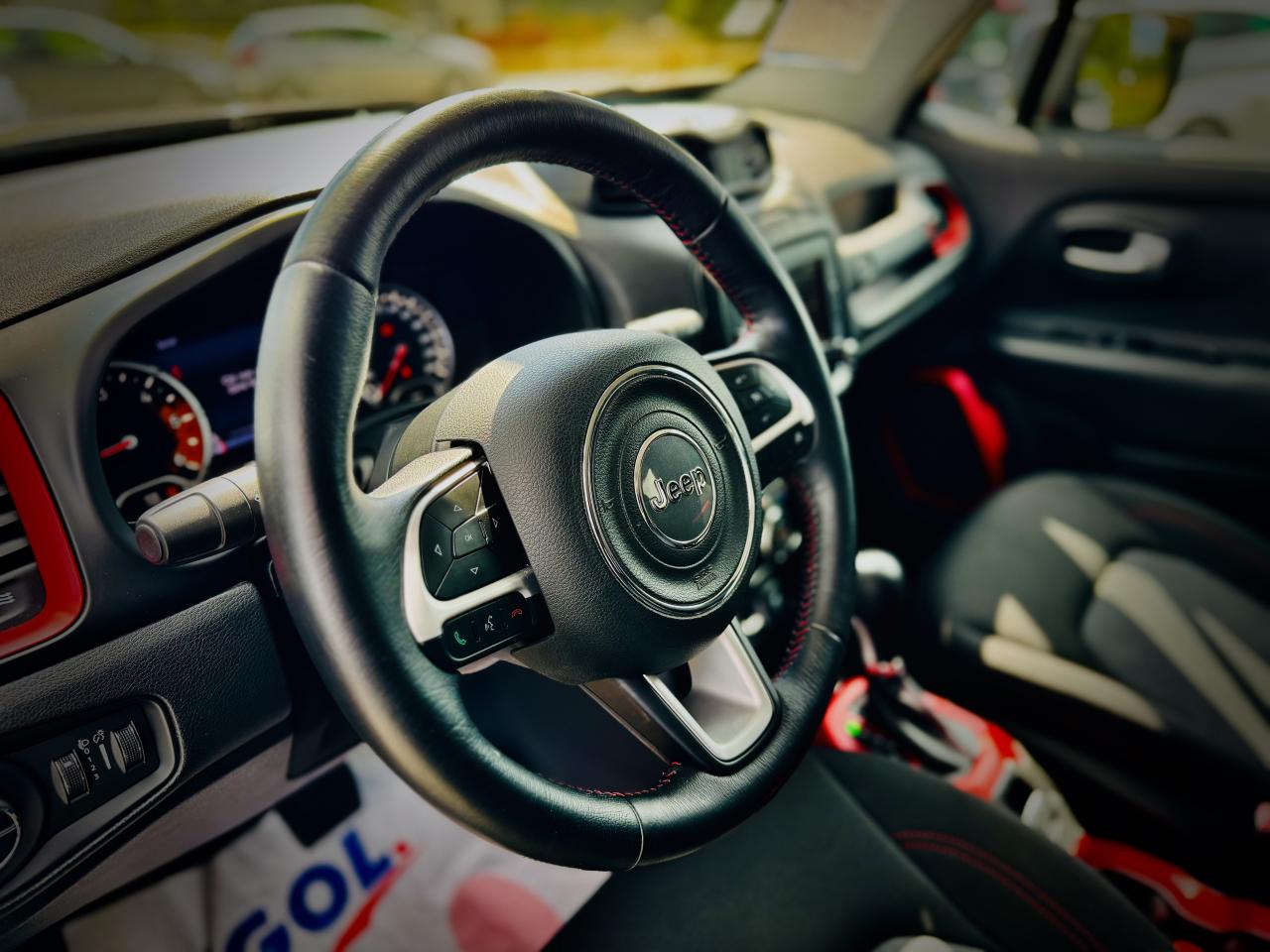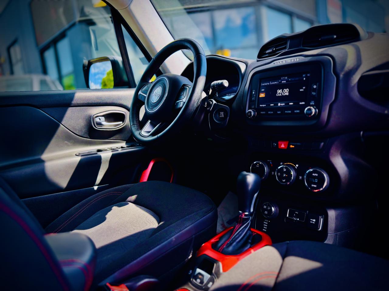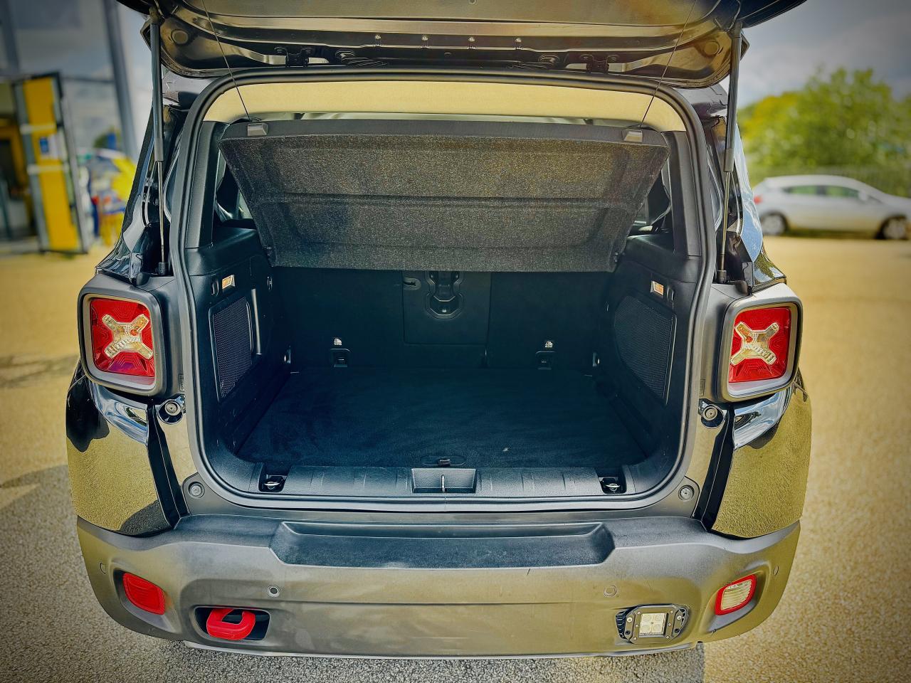 3 appuie-tête arrière réglables en hauteurAccoudoir central avant coulissant avec rangementAffichage de la pression des pneusAide au stationnement arrièreAirbags frontaux (conducteur et passager) nouvelle génération à déploiement variableAirbags latéraux additionnels (dans les sièges conducteur et passager)Airbags latéraux de type rideau avant et arrièreAppuie-tête actifs à l'avantAvertisseur de perte de pression des pneusBarres de toit latérales gris foncéBlocage de la répartition du couple 50/50Calandre Jeep noireCeinture de sécurité réglable en hauteurCeintures de sécurité arrière 3 pointsCerclages de calandre gris foncéClimatisation automatique bi-zoneColoris noirContrôle dynamique de stabilité (ESP)Coques de rétroviseurs extérieurs gris foncéCrochets d'arrimage dans le coffreDéconnexion de l'essieu arrièreDirection assistée électriqueEclairage d'ambiance à LEDFrein de parking électriqueGarde au sol relevée (210 mm)Jantes alliage 17" Trail-RatedKit anti-crevaisonLampe de poche rechargeableLimiteur de vitesseOrdinateur de bord 7" TCM couleurPack FonctionnalitéPare chocs avant et arrière "Trail-Rated"Plaques de protection en acierPoignées de portes couleur carrosseriePort USB 2.0 lié à Uconnect NavigationPort USB ; Prise auxiliaire Jack et lecteur de carte SDPrises 12V ; console centrale et espace de chargementProtection des bas de caisses off-road en plastique noirRégulateur de vitesseRétroviseurs extérieurs dégivrantsRétroviseurs extérieurs réglables électriquementRapport de démultiplication final supérieurSellerie Tissu/VinyleSiège conducteur à réglage lombaire électriqueSiège passager AV, rabattable à platSièges avant à réglage manuel : 6 points pour le conducteur; 4 pour le passagerSystème antipatinage 4 roues par action sur les freinsSystème audio à 6 haut-parleursSystème d'aide à la conduite efficiente : EcodriveSystème d'aide à la descenteSystème d'aide au démarrage en côteSystème d'aide au freinage d'urgence (prépositionnement des plaquettes de freins en anticipation)Système de contrôle de la stabilité en conditions de remorquageSystème de fixation pour siège enfant ISOFIXSystème de gestion de la motricité Select-Terrain : 5 Terrains (Auto/Snow/Sand/Mud/Rock)Système de navigation à écran tactile Uconnect 6,5"Système de téléphonie mains-libres BluetoothSystème préventif anti-retournement (ERM)Système Stop & StartTapis de sol en caoutchoucVerrouillage centralisé avec télécommandeVitres avant et arrière électriquesVitres surteintéesVolant cuirVolant multifonction intégrant les commandes autoradioVolant réglable en hauteur et en profondeur